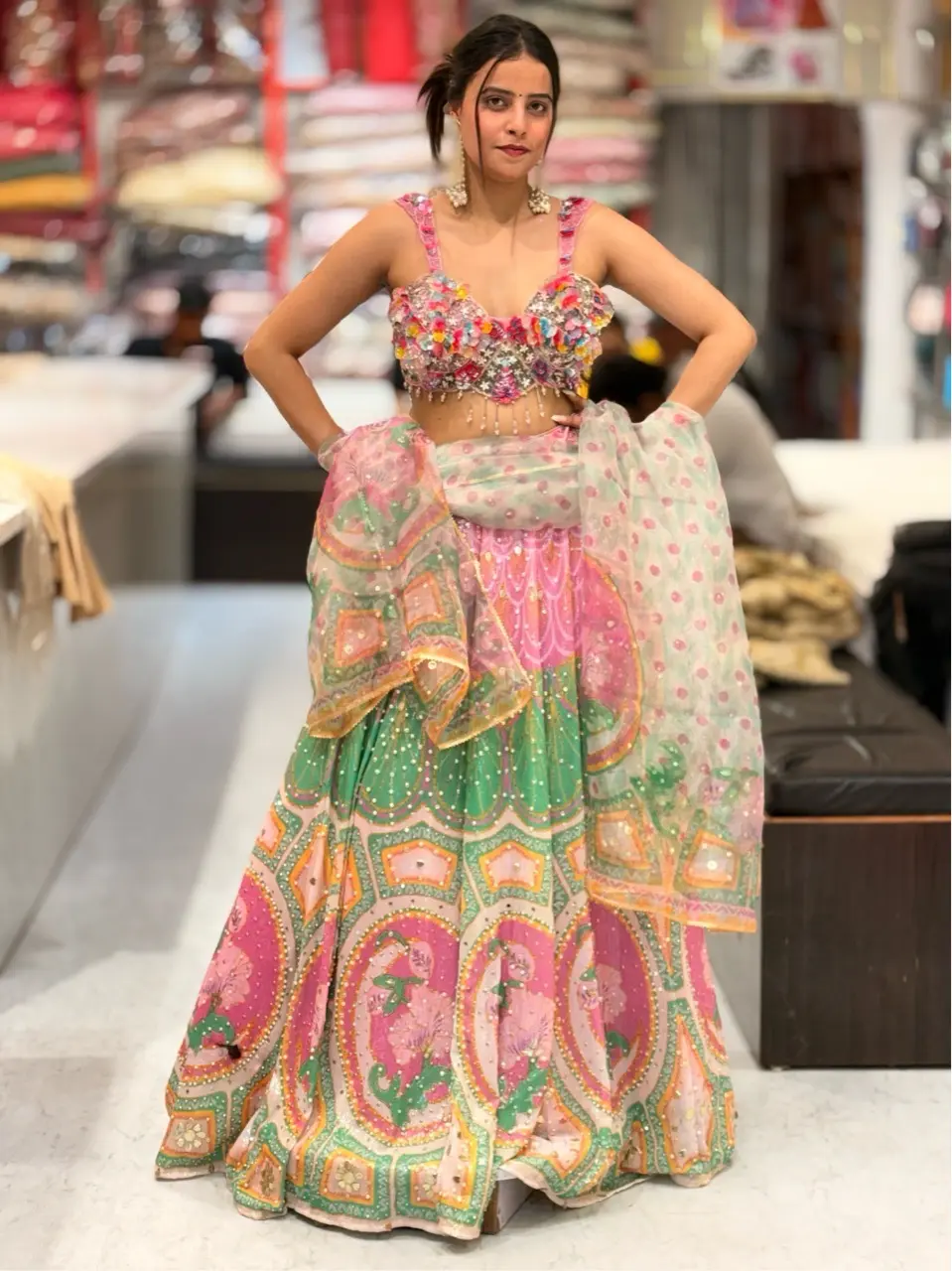 This elegant ruffled saree features layered frills, giving a modern twist on traditional Indian attire. It is ideal for festive occasions and weddings, combining style with cultural heritage.