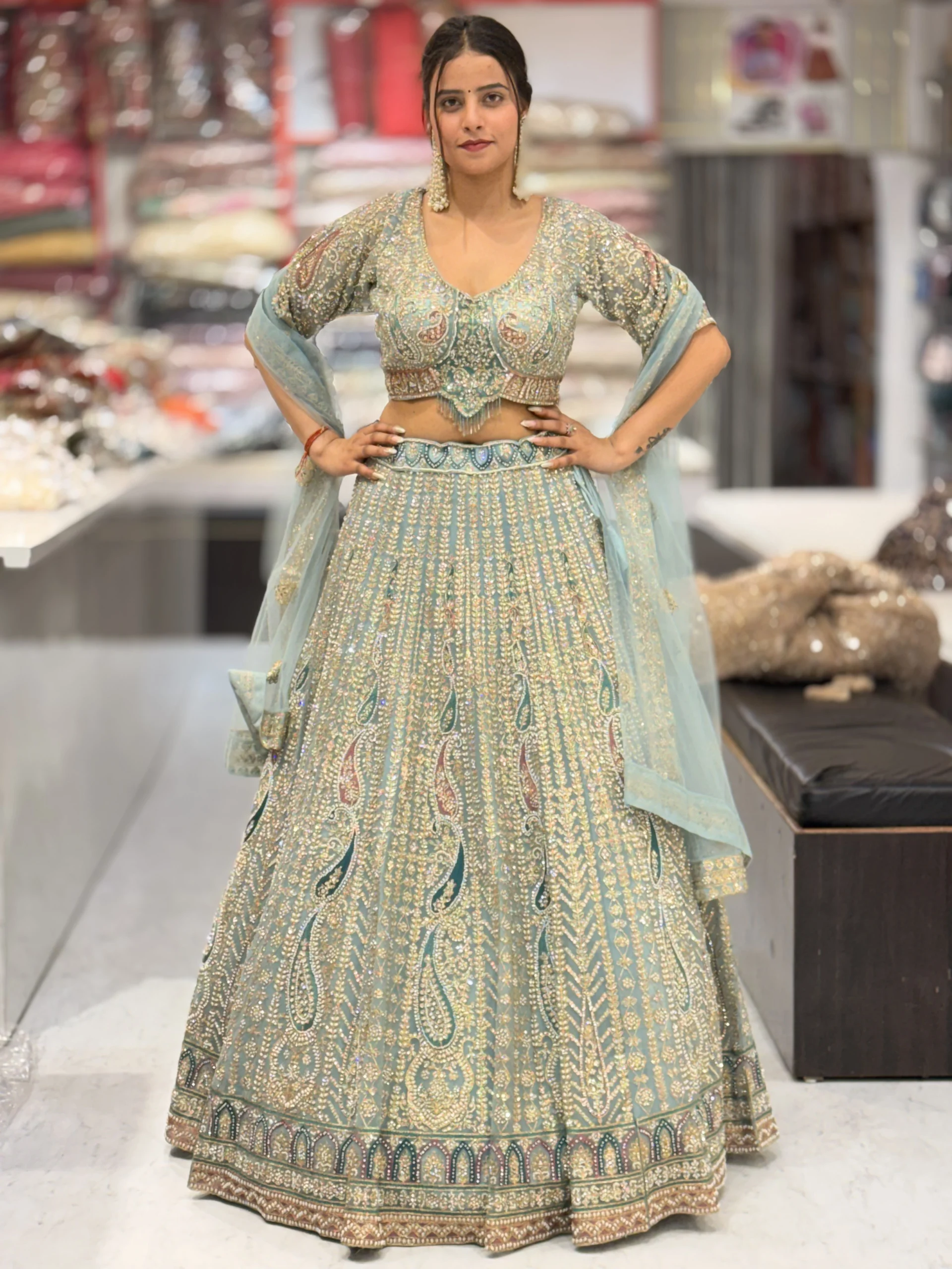 Crafted from luxurious fabric that drapes beautifully, the flowing Anarkali silhouette enhances your natural elegance while ensuring comfort for long hours. The detailed embellishments add richness and depth, making this ensemble ideal for formal occasions, weddings, receptions, and cultural celebrations.